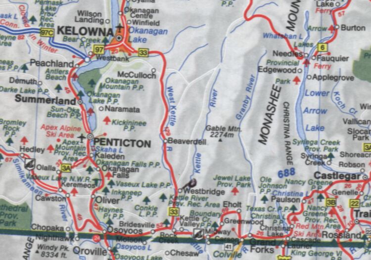 Kelowna, down near the US border. A black circle to the