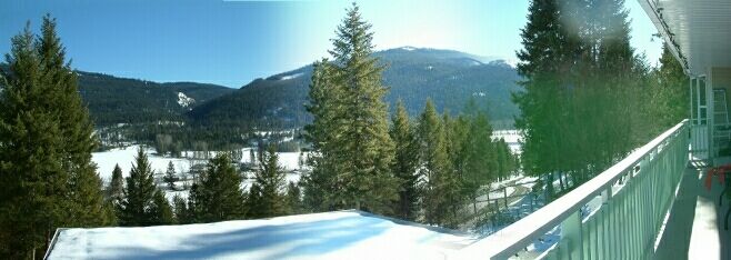 British ColumbiaThe house is almost directly below, on this side of the river, but can not be seen. The mountains behind, where the picture was taken, rises approximately 1000 feet. The Elevation at the house is approximately 2200 feet, or 670 meters.